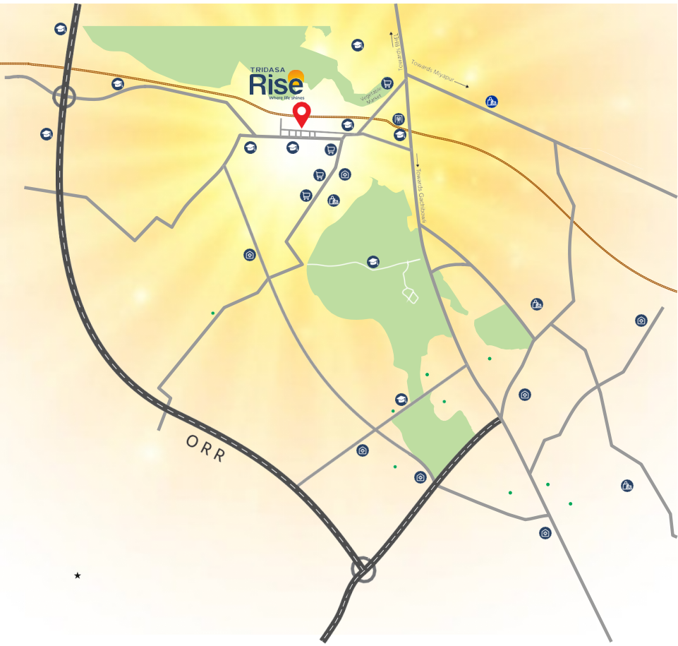 Here, each sunrise brings more than light—it brings warmth, calm, and a promise of joyful living. Whether it’s the open skies, lush green gardens, or the meticulously crafted interiors, Tridasa Rise is a tribute to mindful living.
